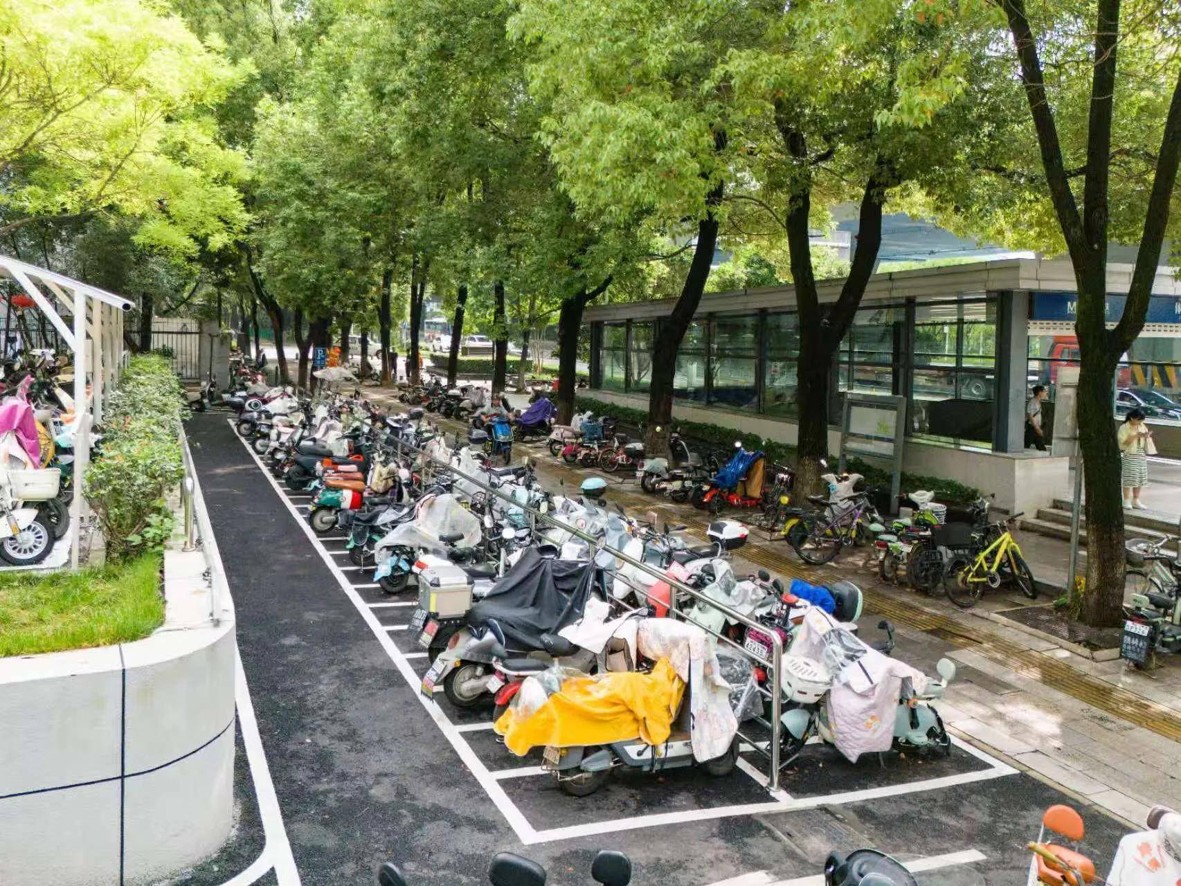 体育中心D出口地处市民服务中心、江汉大学与万达商圈核心地带,日均人流量超2万人次,非机动车停放问题长期困扰市民。起初,城管部门通过规划共享单车停放区,有效缓解了路面拥堵,但随着周边居民电动车保有量激增,充电难、停放乱等新矛盾逐渐凸显。“早晚高峰时,电动车见缝插针地停放,充电线私拉乱接,安全隐患很大。”负责该片区巡查的城管队员陈强回忆道。